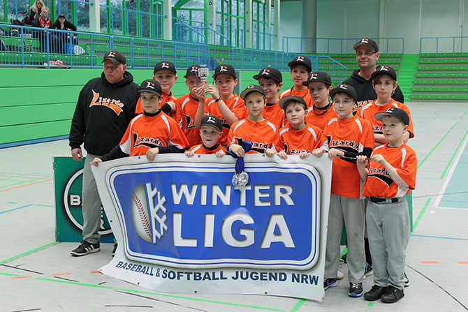 Die Schülermannschaft der Herne Lizards konnte ihren Titel in der Winterliga des BSV NRW erfolgreich verteidigen. Bei den sieben Turnieren der diesjährigen Winterliga konnten die Jung-Eidechsen insgesamt 53 von 60 Spielen für sich entscheiden. Damit sicherten sie sich wie im Vorjahr den ersten Platz in der Gesamtwertung der 13 teilnehmenden Mannschaften. Bei der Winterliga handelt es sich um die offizielle Meisterschaft des Landes Nordrhein-Westfalen im Hallenbaseball.